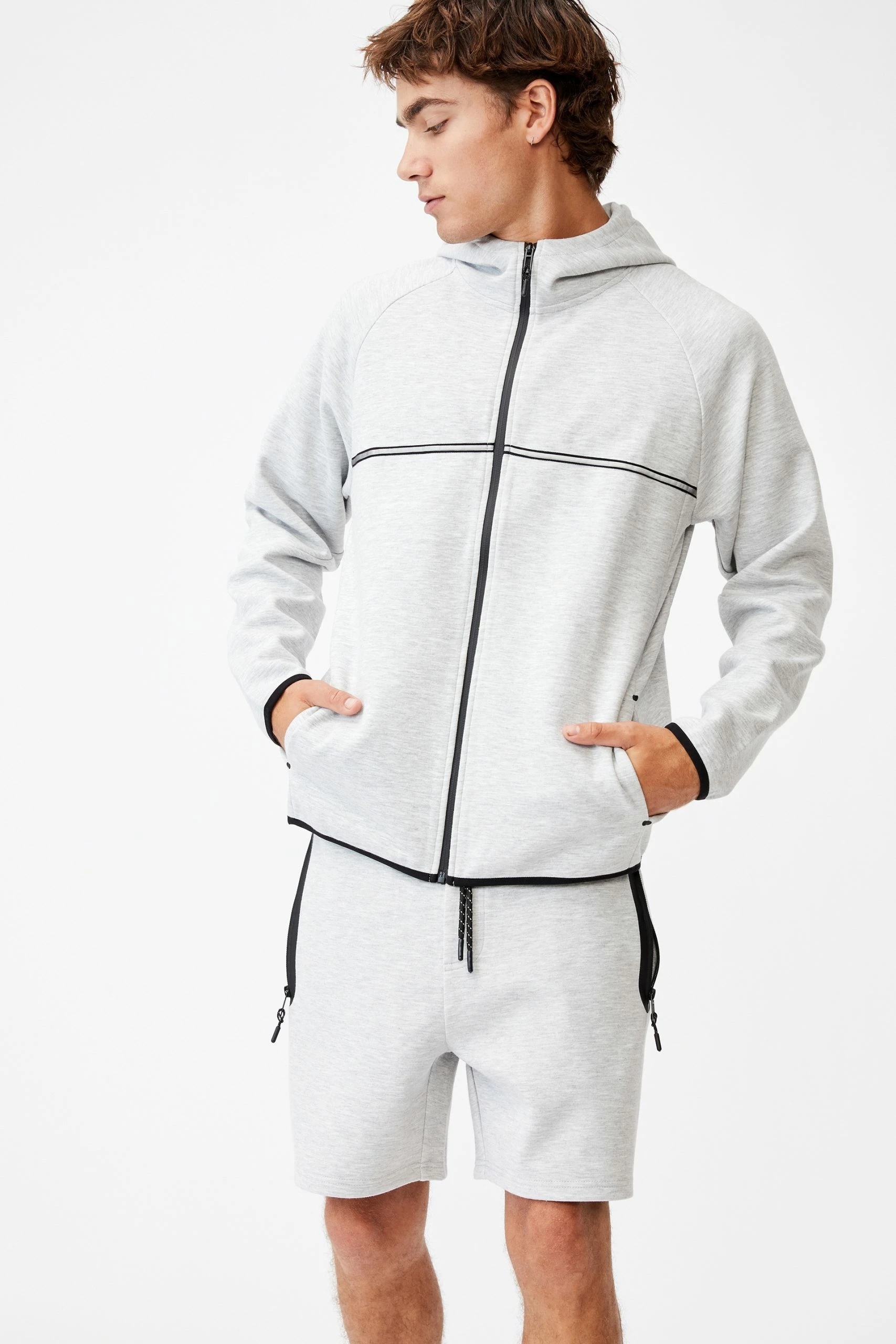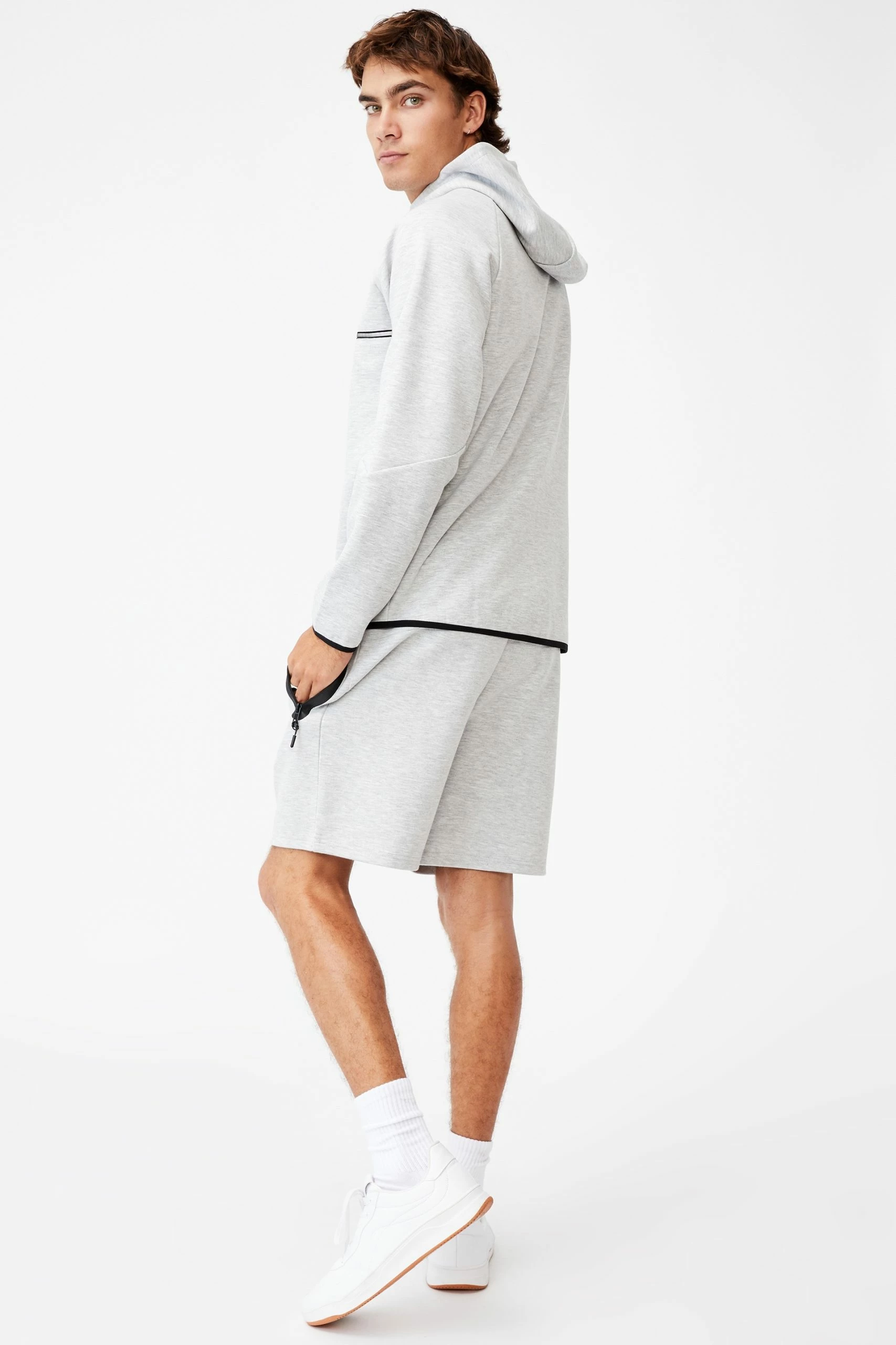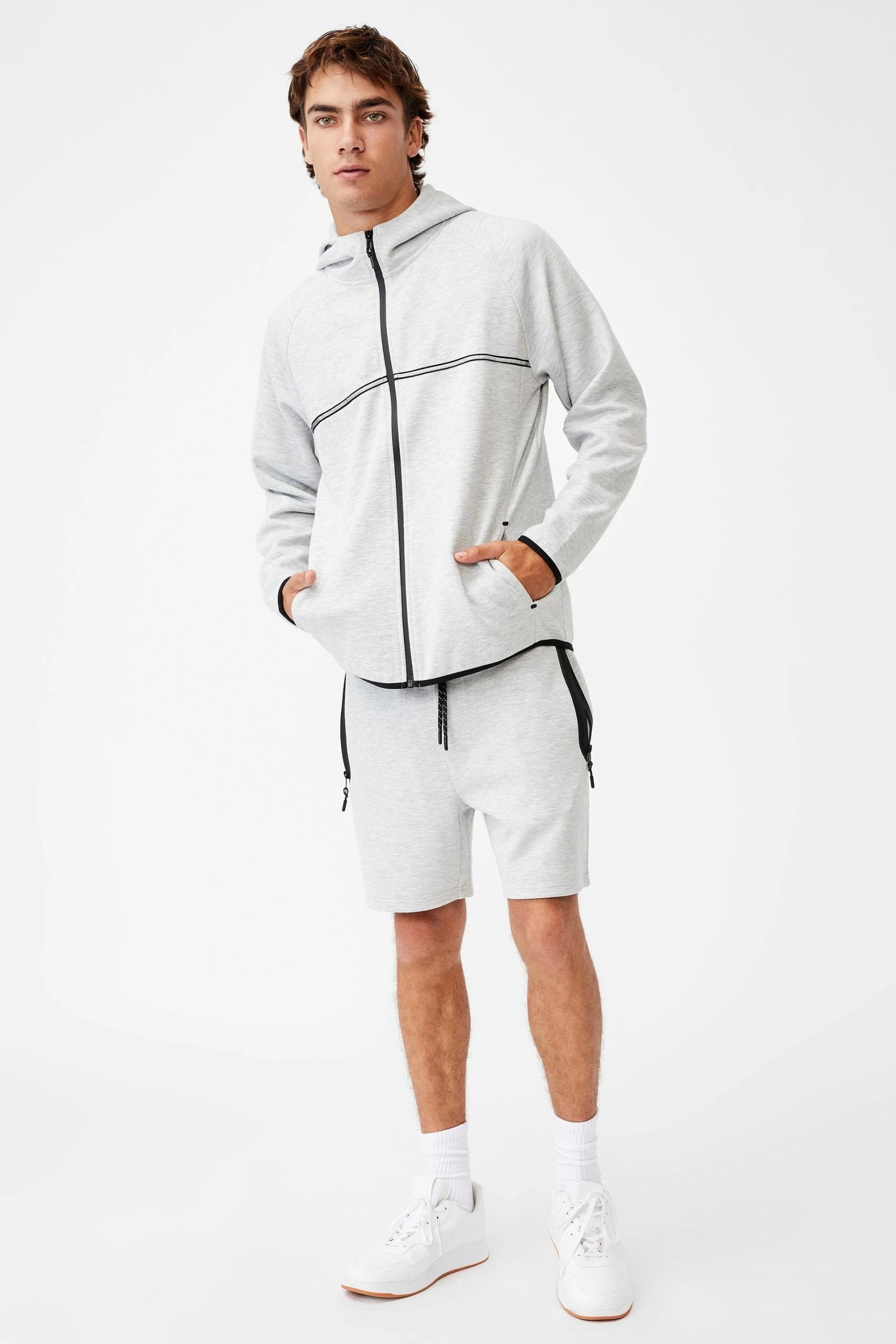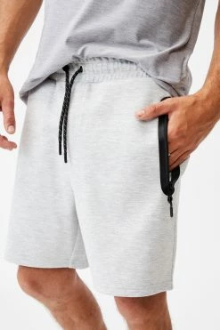 Get ready to roll in our active tech fleece short. This drawstring waisted short has zipped pockets to keep your belongings safe while you exercise and the lightweight fabric will keep you cool.