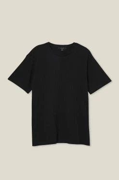 Men’s short sleeve t-shirt with scoop hem and longline fit. This short sleeve T-shirt comes in waffle fabrication for added effect. Perfect for layering or wearing on its own.