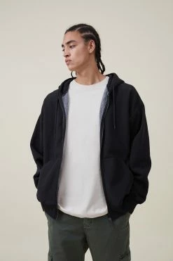 Perfectly oversized zip through hoodie in plush, cotton rich fabric. Features kanga pocket, draw string hood and comes in a variety of colours.